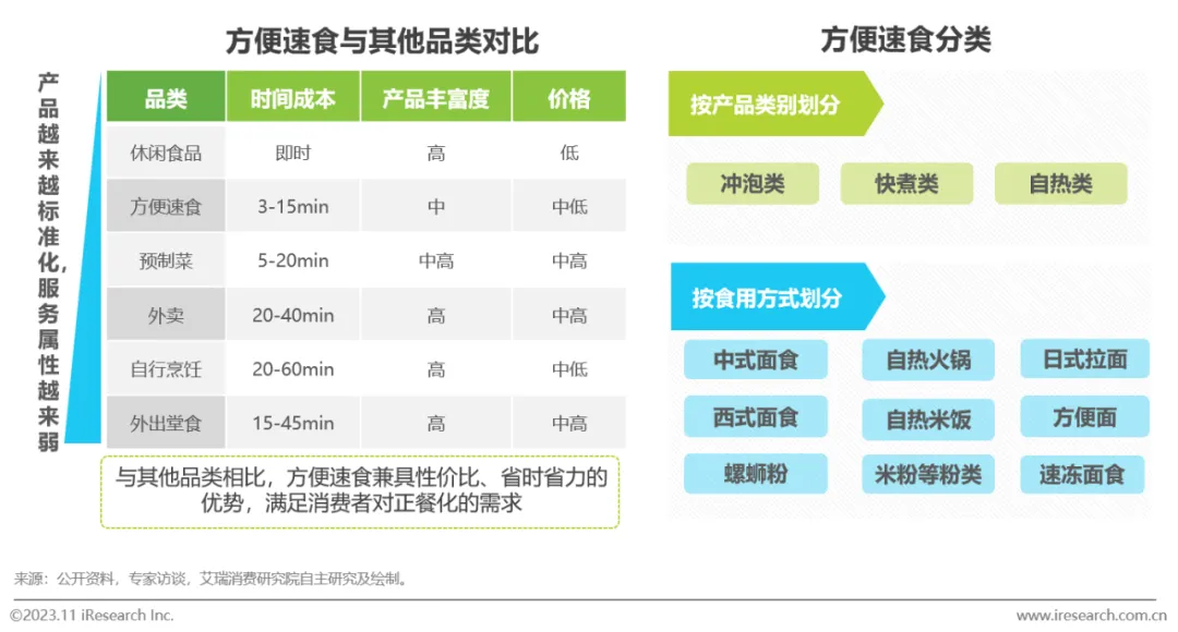 方便速食是指正餐化的预包装食品,兼具性价比和便捷性,满足消费者的正餐化需求