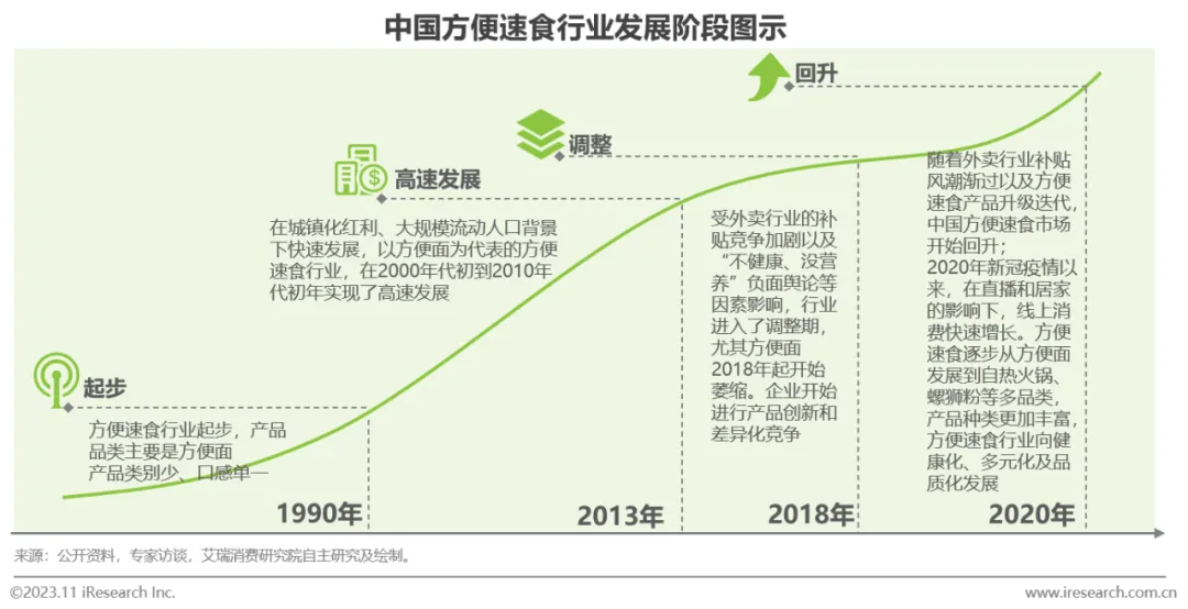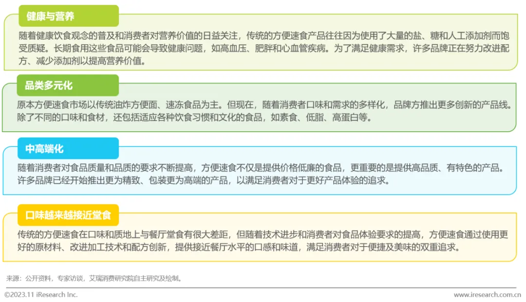 方便速食行业经历了品类单一到多元化竞争和产品创新升级,逐渐朝着健康化和多元化方向发展