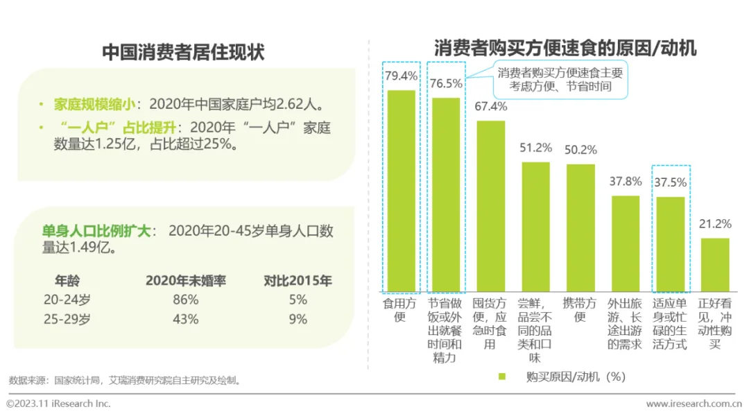 独居群体占比提升、生活节奏快及懒宅经济对生活便捷化需求等推动方便速食行业发展