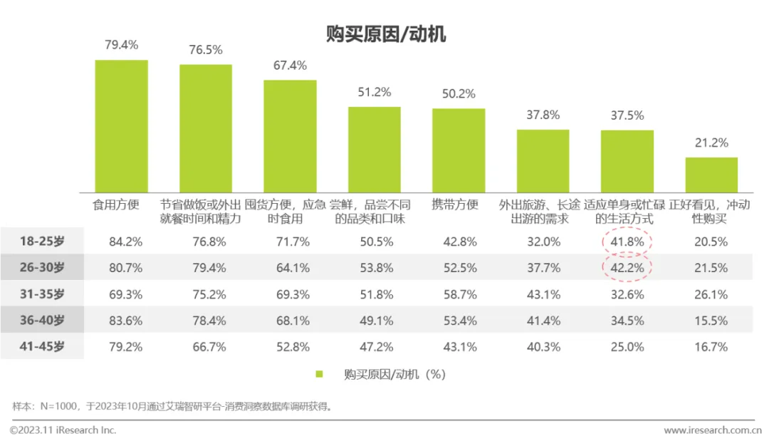 便捷性和提高时间效率是消费者选择方便速食的首要因素;此外,适应单身或忙碌的生活方式在30岁以下用户群体中较为显著