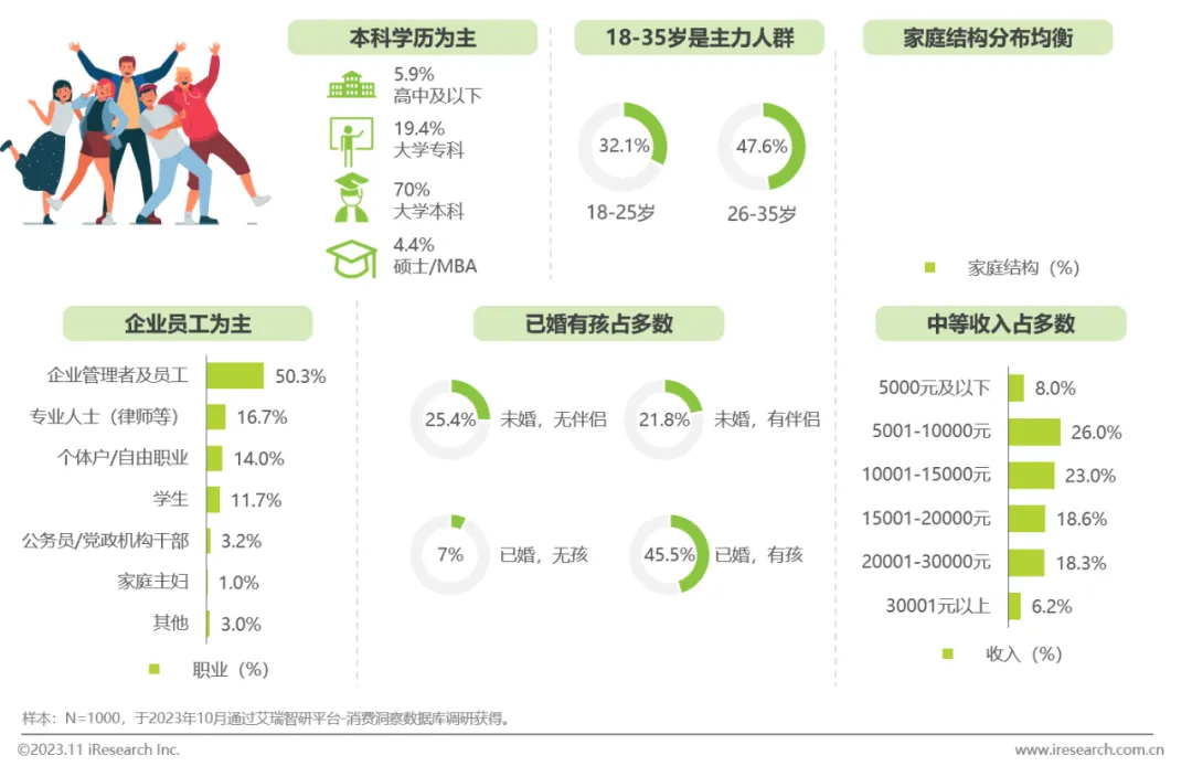 用户年龄主要分布在18-35岁,已婚有孩居多,大学本科学历为主