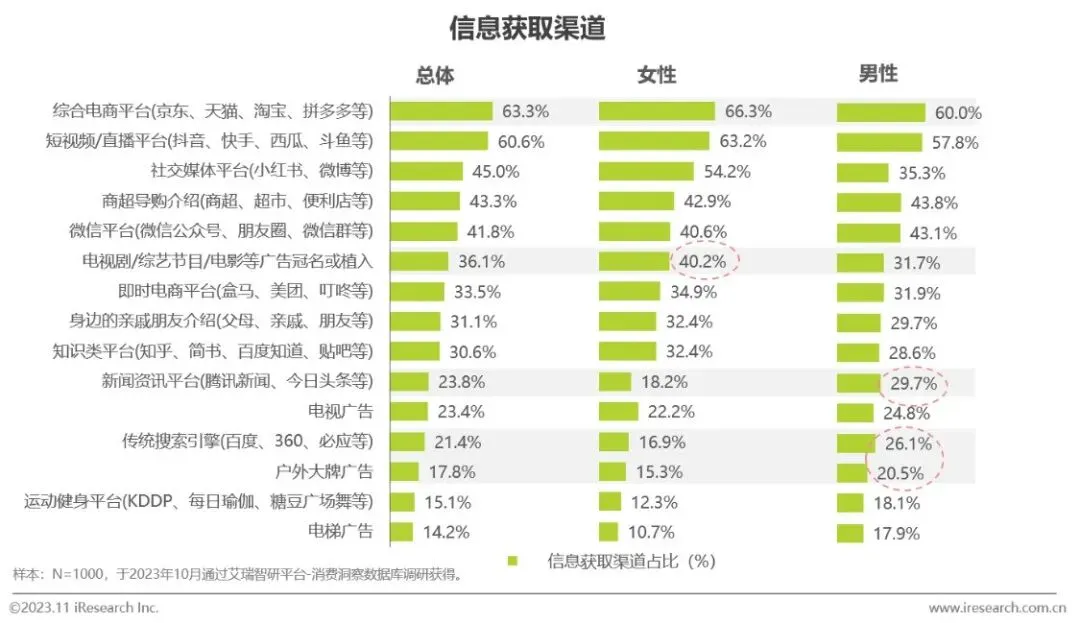 消费者获取信息主要依赖网络平台,导购介绍和亲友推荐也具有一定的影响力