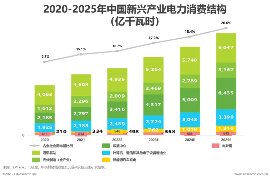 随着新兴产业的不断发展,其电力消费量在我国用电结构中占比不断增加,例如通讯基站、数据中心用电负荷持续增加。