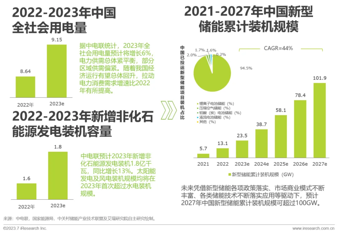 新兴产业用电需求逐步增多,储能在更多场景下逐步渗透