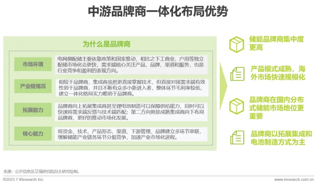 行业的发展终究要以市场为主,玩家把握市场端的打法也是产业逐渐成熟化的标志。品牌商作为链接制造端和市场端的核心环节,直接将上端集成产品通过设计开发及管理对标售卖给下游B、C端客户,然后搭配一系列的供应渠道、售后服务等实现商业化发展。未来的资本认可度会逐步增高。以品牌商为核心想向产业链上下游布局会成为行业集中化发展的主要形态。