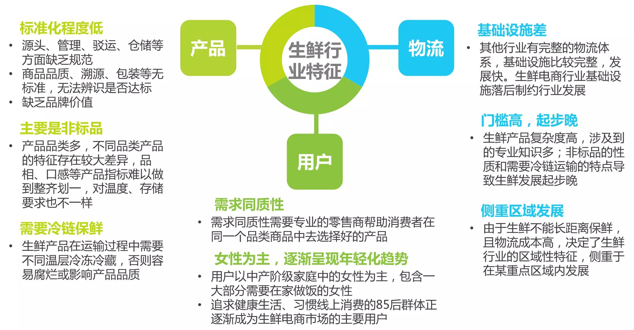 ● 生鲜在产品、用户、物流三个方面与其他行业不同