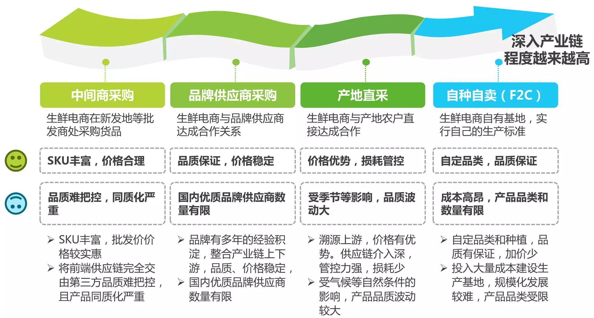 目前生鲜电商大多采用混合模式进行产品采购,不断向上游产业链顶端延伸,最大程度降低成本,把控品质。