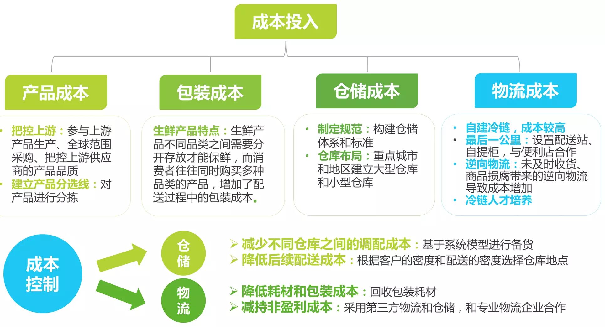 ● 产品/包装/仓储物流是主要成本,企业采取相应措施控制