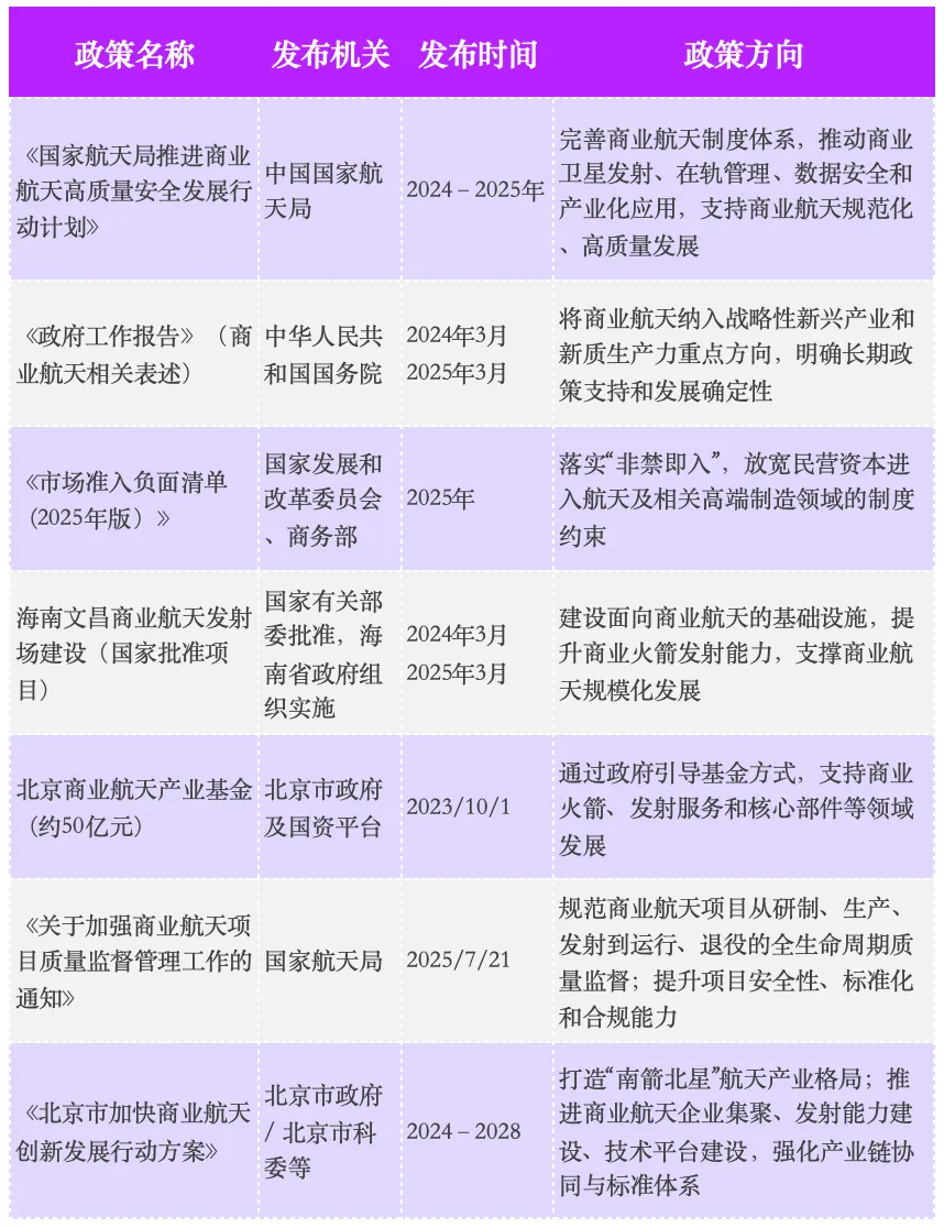 2025年国家航天局正式设立商业航天司。标志着我国商业航天从以往依托规划、行动计划和部门协同推进的阶段,进入由专职司级机构统筹管理的制度化发展新阶段。在上游,商业航天司的设立强化了对关键材料、核心部件和发动机技术自主可控的长期需求牵引,推动企业加快研发投入和产能布局;中游,明确的主管司局有助于规范商业火箭研制、试验和发射流程,降低制度摩擦,推动发射服务向高频次、低成本和规模化方向演进;在下游,商业航天应用在通信、遥感和卫星互联网等领域的产业化路径更加清晰,有利于释放星座建设和数据应用的市场潜力。