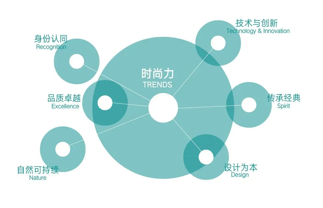 本报告明确了时尚力模型的六大标尺:技术与创新(Technology & Innovation)、身份认同(Recognition)、品质卓越(Excellence)、自然可持续(Nature)、设计为本(Design)和传承经典(Spirit)。