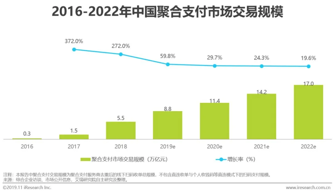 商户渗透率:2019年聚合支付覆盖的商户数量为2307万家,商户渗透率达到46.1%。