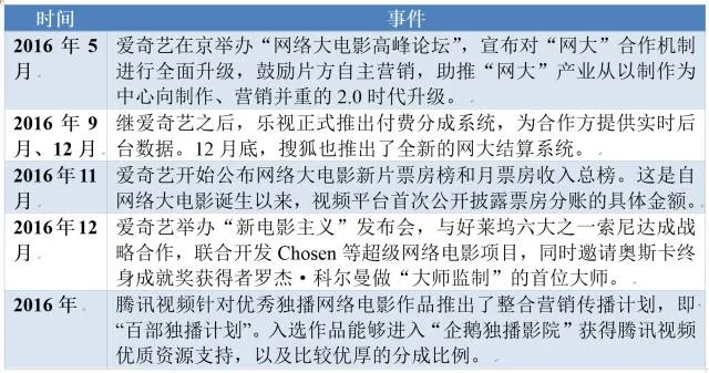 表9-1-1 2016年网络大电影行业部分标志性事件