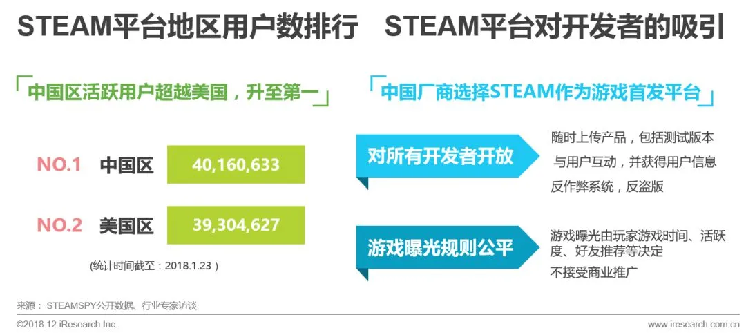 一方面,随着STEAM平台中国玩家数量增加,国外游戏开发商开始重视中国市场和中国玩家;另一方面,由于STEAM平台的开放性更强,国内更多的独立PC单机游戏开发者选择STEAM作为游戏首发平台