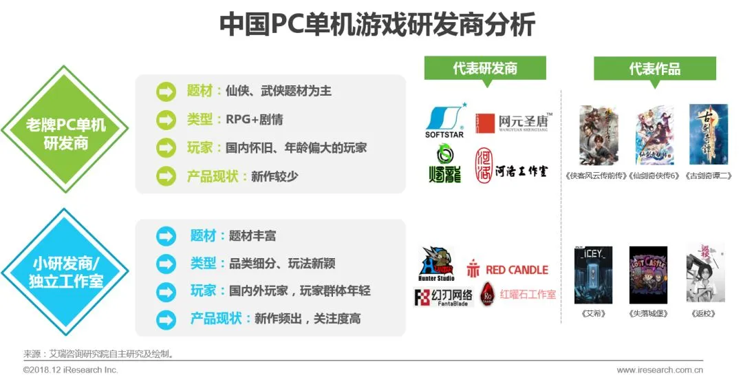 目前PC单机游戏仍以小研发商或独立工作室的游戏为主,多为细分品类或轻量级的游戏,市场上的商业大作依然稀缺。