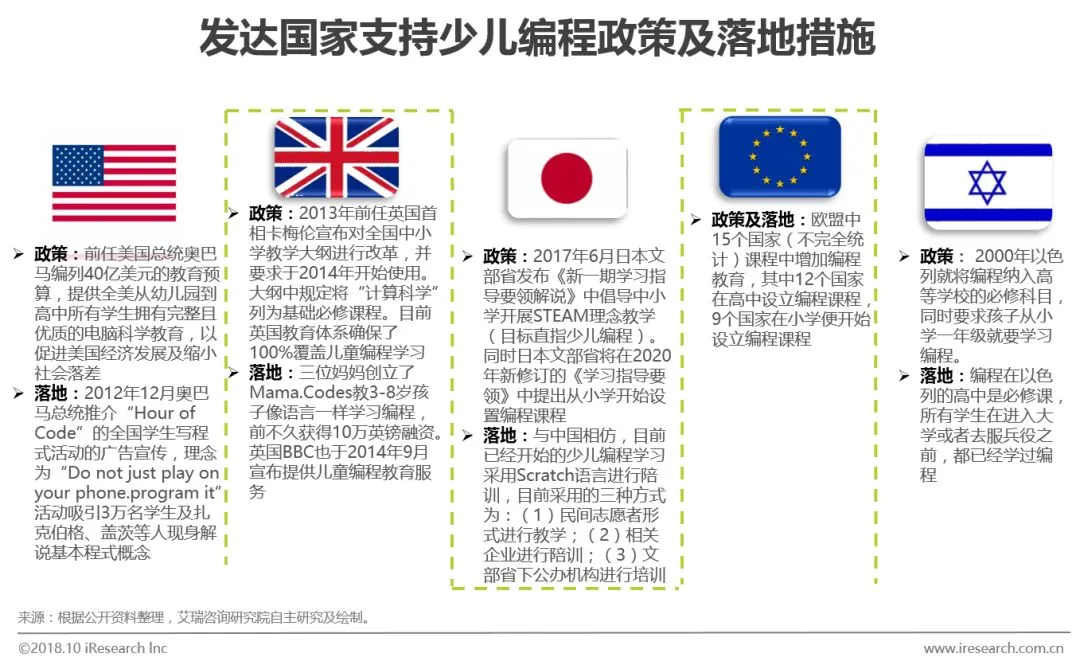国外少儿编程起步早于国内,目前发展的已经较为成熟。同时国外政府对于少儿编程额政策与资金支持成为该行业迅速发展的主要驱动因素。