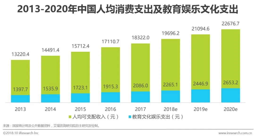 2013年起人均消费支出一直处于良好的增长态势,增速维持在7.5%左右。同时教育文化娱乐部分的支出占比维持在11.5%左右。从目前国家政策来看,未来教育将成为拉动国家内需的因素之一。
