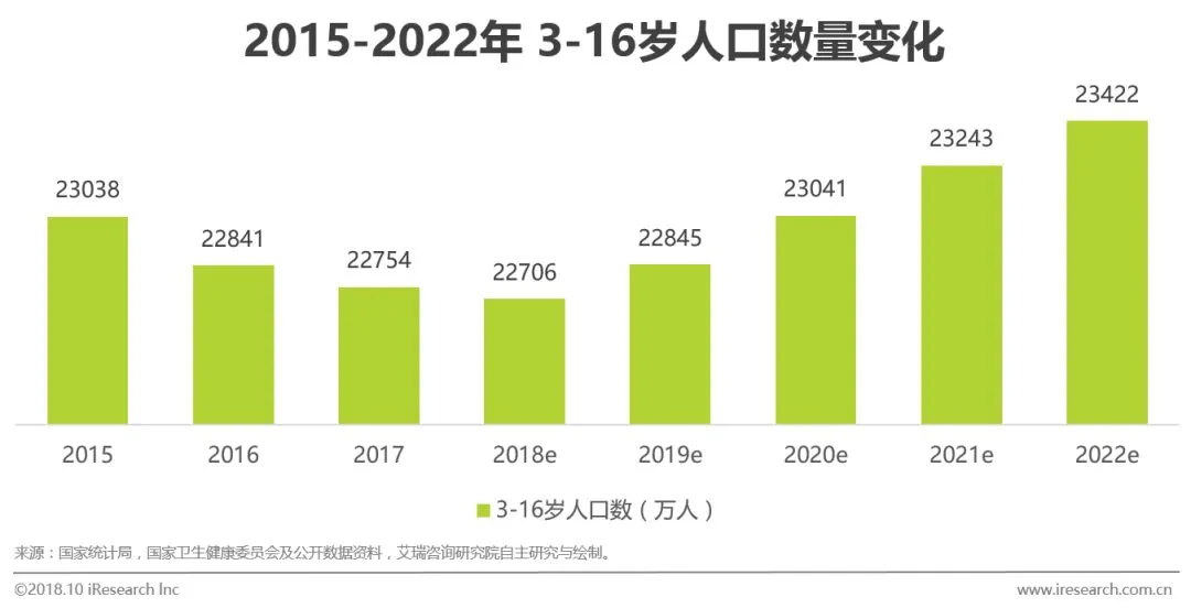 南开大学人口与发展研究所教授原新预测,“十三五”期间(2016年-2020年),中国每年出生人口的规模会在1700万-1900万人之间波动。自2018年起,我国3-16岁人口数量将持续增长,增长率保持在0.6%-0.9%之间。