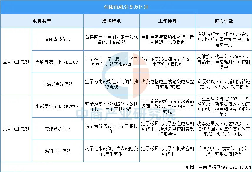 伺服电机是一种高精度、高性能的电动机,广泛应用于各种自动化设备和系统中。它能够精确地控制速度、位置和转矩,以满足不同工况下的需求。伺服电机按电源类型分为交流伺服和直流伺服两大类,其中永磁同步伺服电机因高精度、高动态响应成为工业主流,具备调速范围宽、定位误差小、响应快的特点,广泛应用于工业机器人、数控机床、自动化产线及低空经济装备等领域。