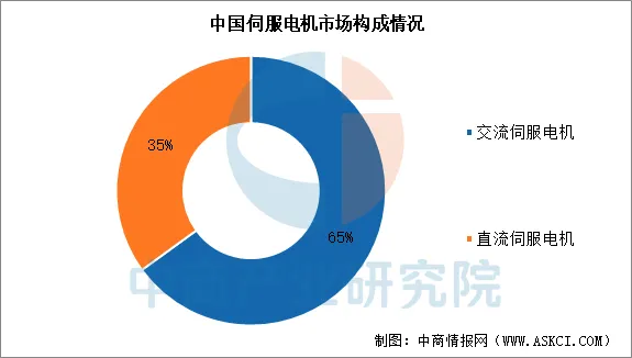 目前在我国伺服电机市场中,交流伺服电机市场占据主要市场。数据显示,交流伺服电机市场占比65%,直流伺服电机占比35%。