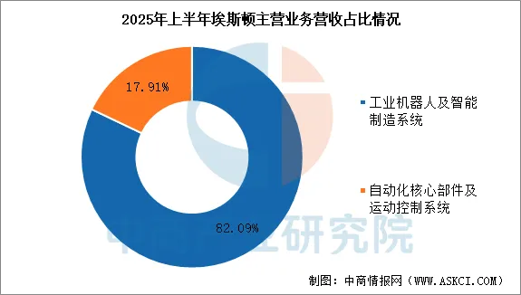 2025年前三季度,埃斯顿营业收入为38.04亿元,同比增长12.97%,归母净利润为0.29亿元,同比增长143.48%。2025年上半年主营产品包括工业机器人及智能制造系统、自动化核心部件及运动控制系统,营收分别占整体的82.09%、17.91%。