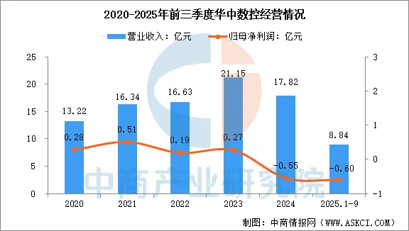 2025年前三季度,华中数控营业收入为8.84亿元,同比下降20.19%,归母净利润为-0.6亿元。2025年上半年主营产品包括数控系统与机床、机器人与智能产线,营收分别占整体的65.54%、28.26%。