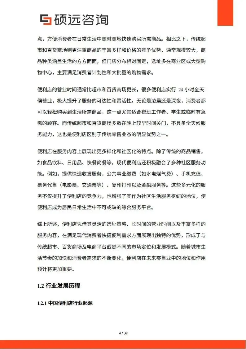 行业定义清晰,以社区、商业区等为主要布局区域,面积小、营业时间长,商品涵盖食品饮料、日用百货等,且增值服务不断丰富。其类型多样,包括连锁、社区、无人及特色便利店等,与传统超市、电商平台相比,在选址灵活性、营业时间和服务多元化上优势显著。
