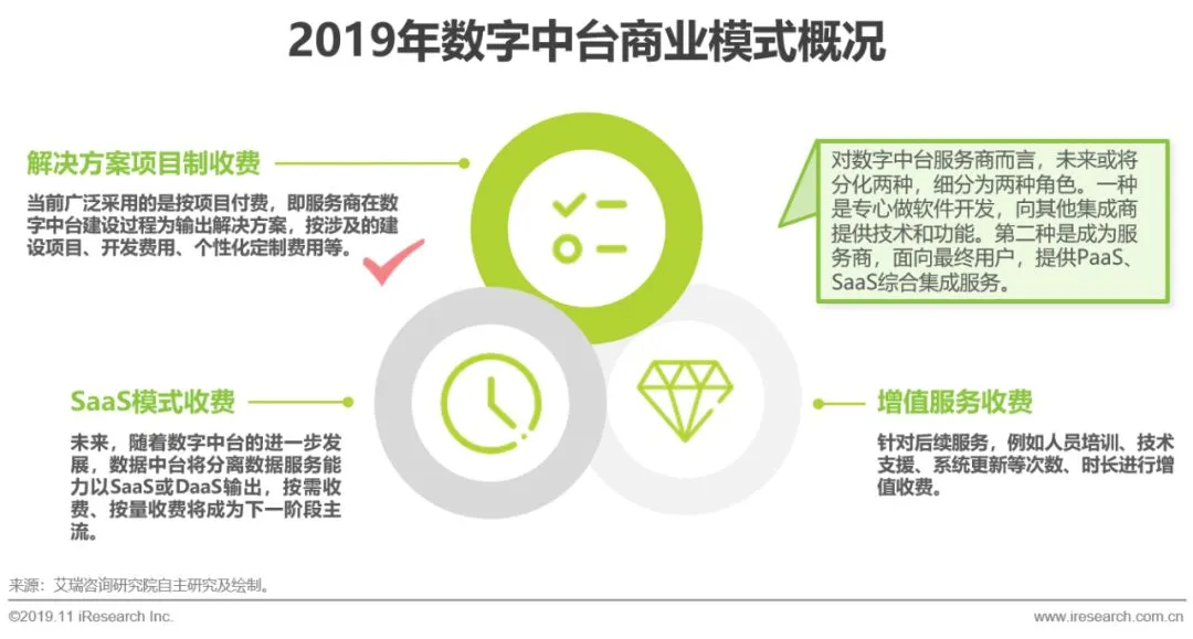 数字中台未来的应用趋势是向中小型企业赋能,围绕特定场景将出现更多SaaS应用,降低企业的建设成本,并推动企业大数据应用向智能化发展。众多软件服务厂商入局,细分领域将会出现新的头部企业,整个云服务生态竞争会越来越激烈。数字中台的概念界定
