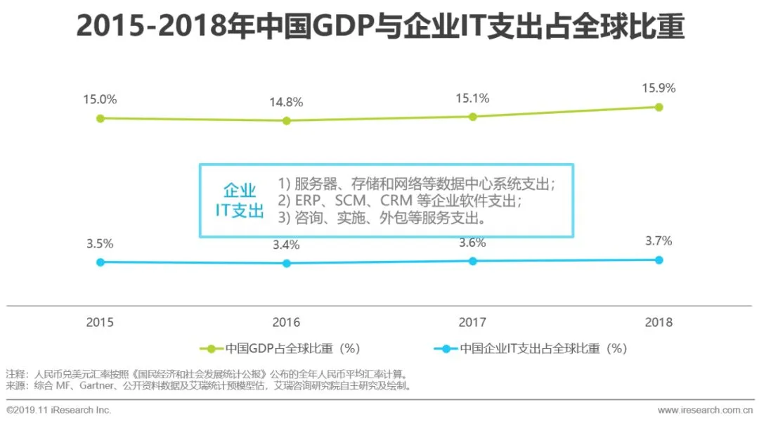 与发达国家相比,中国企业信息化水平与经济总量的关系极不平衡。1)2018年中国GDP占全球的比例达到15.8%,但IT支出占比仅为3.7%,企业信息化发展整体发展水平滞后,企业自身IT团队自主开发能力相对较弱,数字化通常是外包或与外部机构共同开发。2)虽然政策上已经指明了转型的方向和重点任务,但在实际落地的过程中,观望者的比例仍然很大。这说明依然有大量企业的信息化停留在初级阶段,推进数字化转型仍需时日,数字中台尚不是企业第一优先级。3)数字中台最终目的是反哺业务,提升企业的数字竞争力,前提是必须将数字化转型视为企业战略,这无疑给企业带来了业务改造、技术能力、组织结构、人员储备上的挑战。