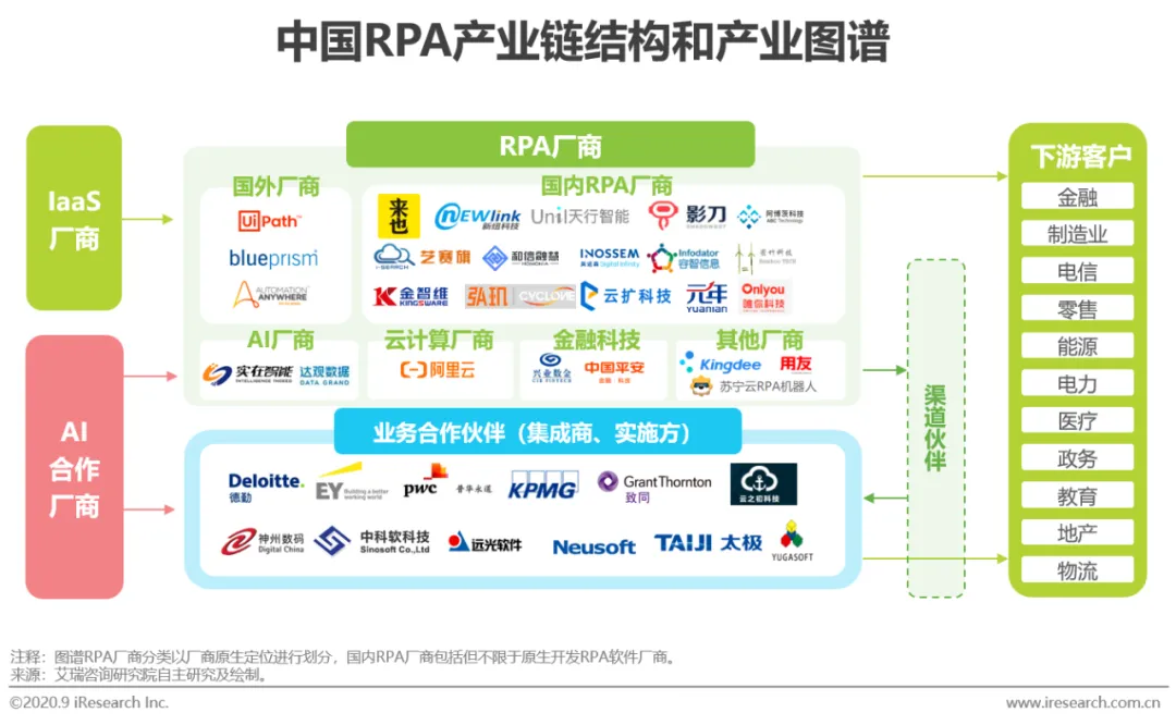 中国RPA参与者及产业链结构
