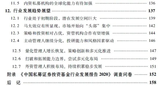 报告先期由委员单位星石投资牵头,由中信证券研究部开展课题研究工作,后期由协会私募服务部等相关部门统稿而成。在报告研究编撰过程中,私募证券投资基金专委会各委员单位、部分行业机构提供了重要的智力支持、研提了许多建设性意见建议,在此一并表示衷心感谢!
