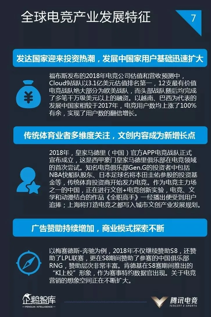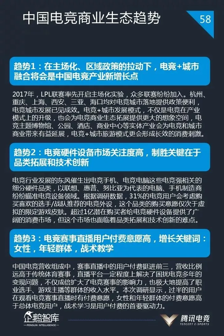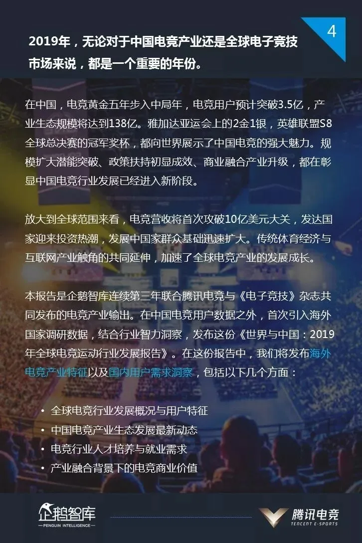 这是腾讯电竞联合企鹅智库连续第三年发布电竞产业报告。