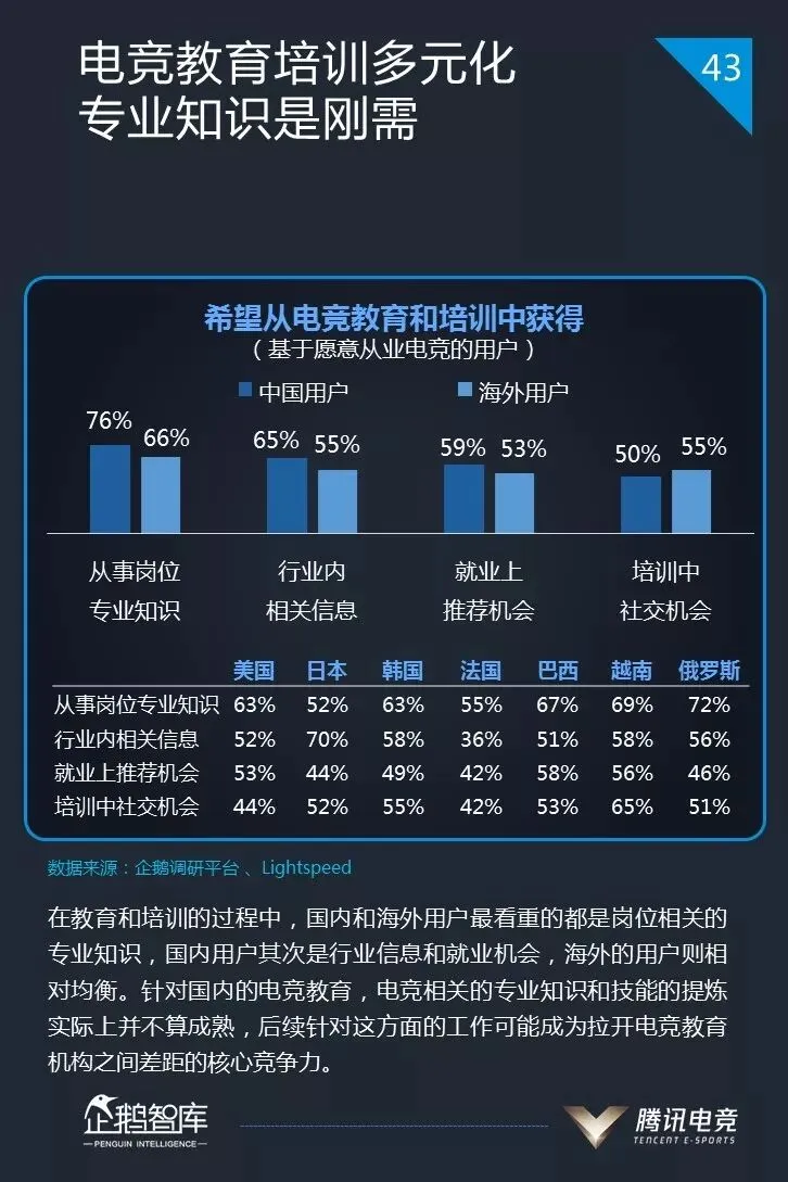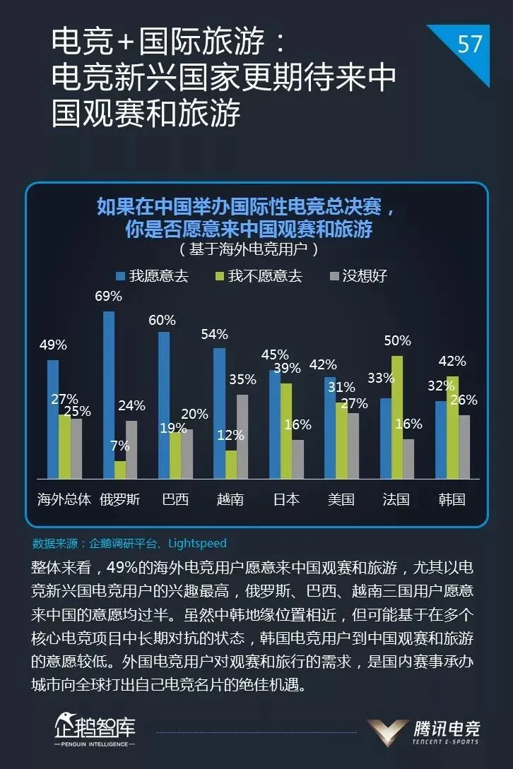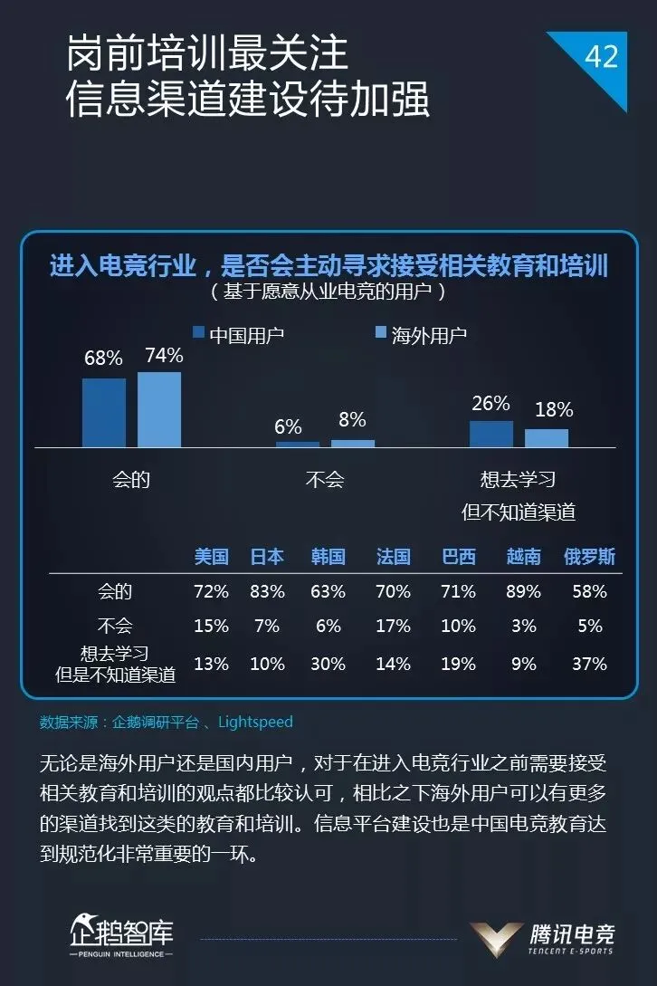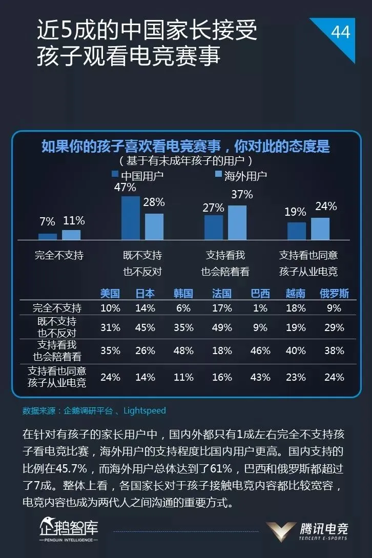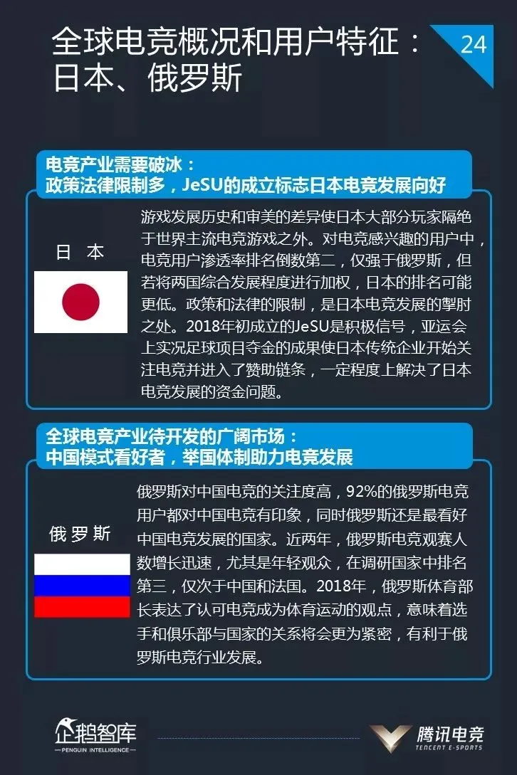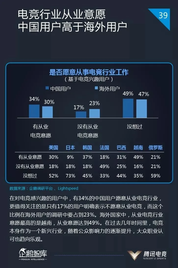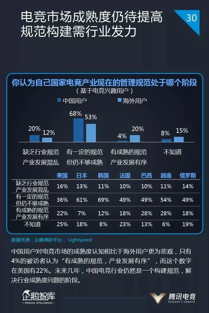 在这一背景下,腾讯电竞再次联合企鹅智库与《电子竞技》杂志,发布这份《世界与中国:2019年全球电竞运动行业发展报告》。今年,除了通过企鹅调研平台,对全国范围内手机网民进行广泛调研之外,我们还首次对海外7个国家,包括美国、日本、韩国、法国、巴西、越南、俄罗斯的用户进行精准调研,以展示不同国家的电竞产业发展情况。