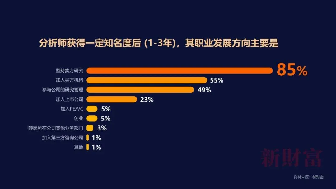 根据分析师的经验或观察,若分析师获得一定知名度后,在短时间内(1-3年),其职业发展方向主要是: