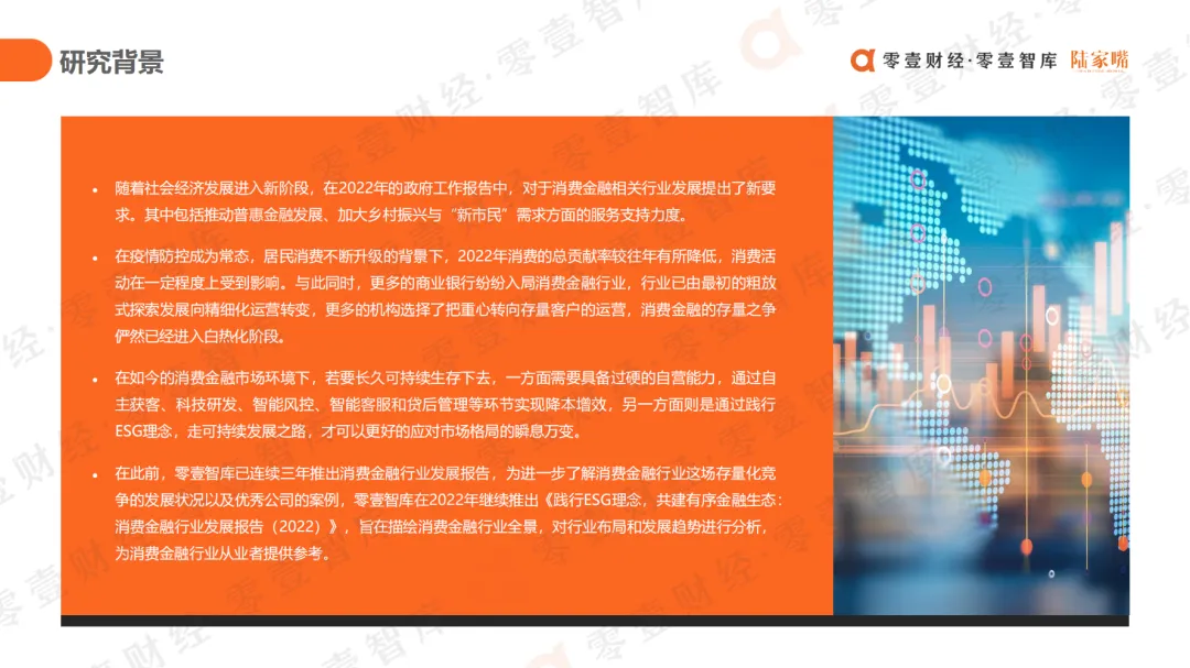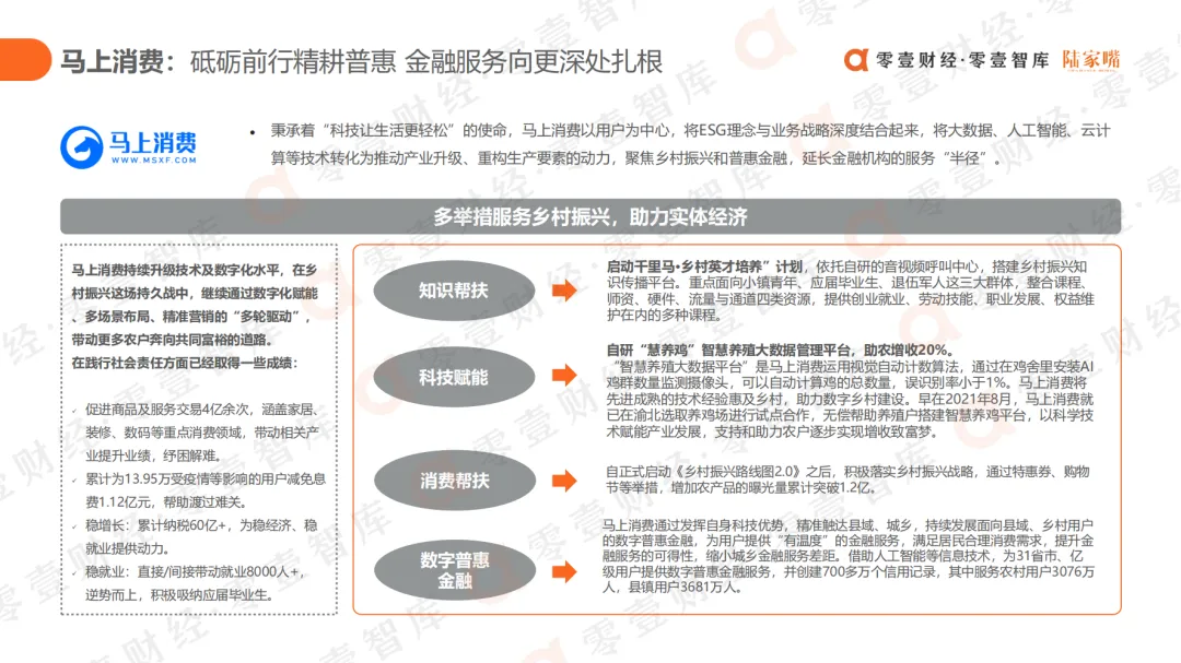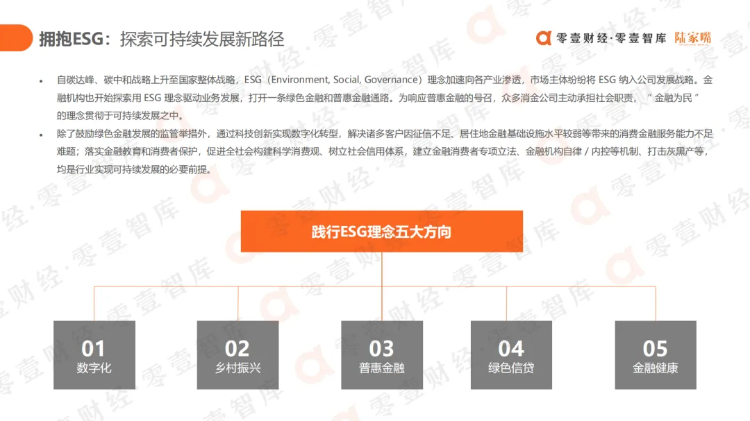 从践行ESG理念,探索消费金融可持续发展方案。银行、消费金融公司与金融科技公司共生共建,从数字化助力产品创新、场景布局、新型风控;发力乡村振兴、普惠金融、绿色信贷,维护金融健康等方向,加速推进消费金融产业高质量、合规化发展,有效改变消费金融行业乱象,助力各类金融机构在践行ESG理念的同时,探索出一套可持续发展方案。