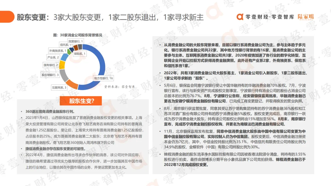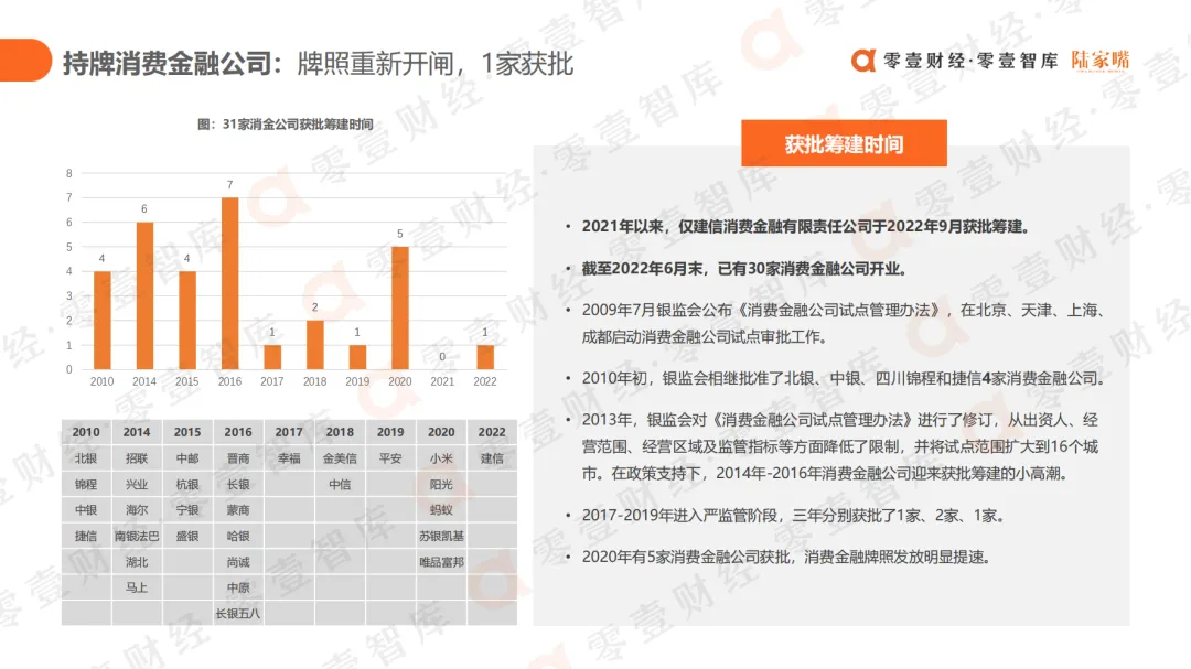 行业格局重塑。2020年,5家消费金融公司获批,互联网大厂纷纷入局;2021年,无消费金融牌照获批,3家消费金融公司开业;2022年,建信消费金融获批筹建,3家消费金融公司大股东易主,1家消金公司引入新股东,1家二股东退出,1家公司寻求新股东。各方因素驱动着消费金融朝着持牌化、线上化、平台化发展,竞争加速,行业格局开始重塑。