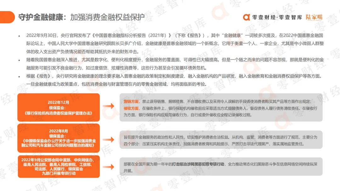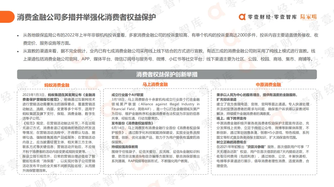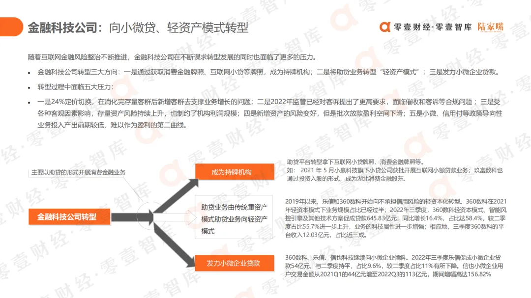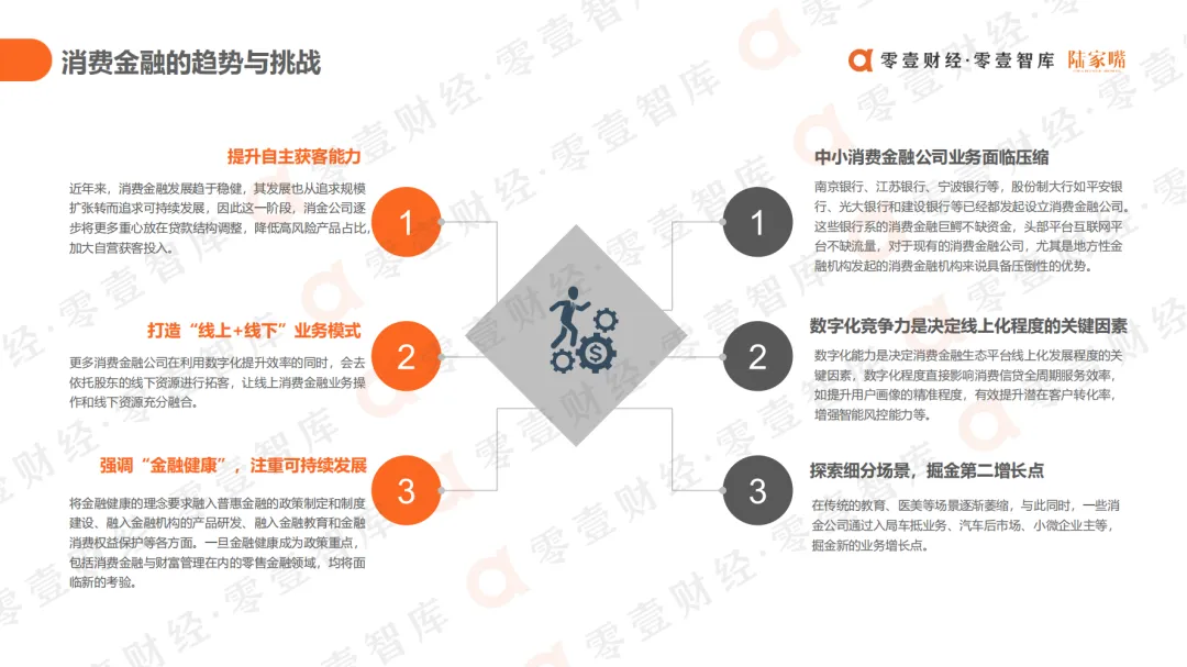 三大趋势和三大挑战。趋势:消费金融公司需提升自主获客能力;更多消费金融公司将倾向于线上线下相结合的模式;未来将更加注重金融健康,走可持续发展之路。挑战:未来中小消费金融公司业务将面临压缩;数字化将是核心竞争因素;挖掘更多细分场景,将是决定消费金融公司新兴业务增长点的关键因素。