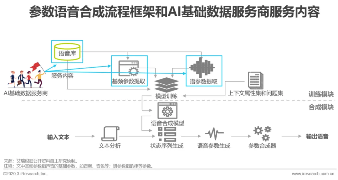 语音合成技术已经广泛应用于人们的日常生活中,如手机助手、智能客服、智能音箱、语音导航都是其应用场景。目前语音合成的主流方式可以分为波形拼接合成和参数合成两种,其中参数合成是利用文本参数和声学参数间形成映射模型,从而完成文本内容向语音转化的过程,所以在有限样本数据的情况下,参数合成语音成为了众多智能语音算法团队的首选,随着深度学习在语音领域的突破,利用神经网络取代传统映射建模的参数合成方式,在合成效果上更进一步,逐渐减少了合成语音的机械感。在语音合成中AI公司着重于映射模型算法的创建和训练,而语音片段数据和相应的声学参数标注则交由数据服务商提供,其间数据服务商需要对录制的发音人语音片段进行音素、韵律、音节边界、音素边界、词性、重音、声调等内容进行标注,然后切分、截取音素边界;并且在项目初期需要向客户展现合成demo,在项目交付时需校验合成效果,这就要求数据服务商不仅要掌握专业的声学知识、数据标注经验,还要拥有语音合成的算法能力,目前该领域主要由海天瑞声和标贝科技两家数据公司提供服务,未来随着物联网的普及,将会有更多交互设备出现,语音合成需求将会持续增长,在此趋势下,拥有语音合成数据处理能力,将成为具有排他性的竞争壁垒。