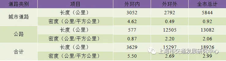 表2.1 2021年上海市道路设施规模与密度