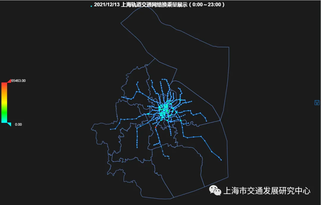 图3.5 上海轨道交通网络换乘客流量示意图