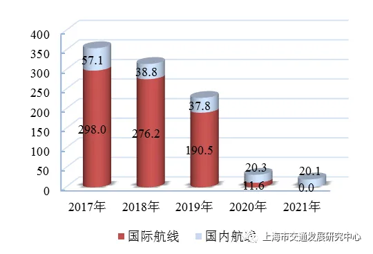 【旅客吞吐量】 2021年,上海港完成旅客吞吐量20.1万人次。其中,国内航线完成20.1万人次, 较上年下降1.2%;国际航线完成0人次。进港占49.6%,出港占50.4%。