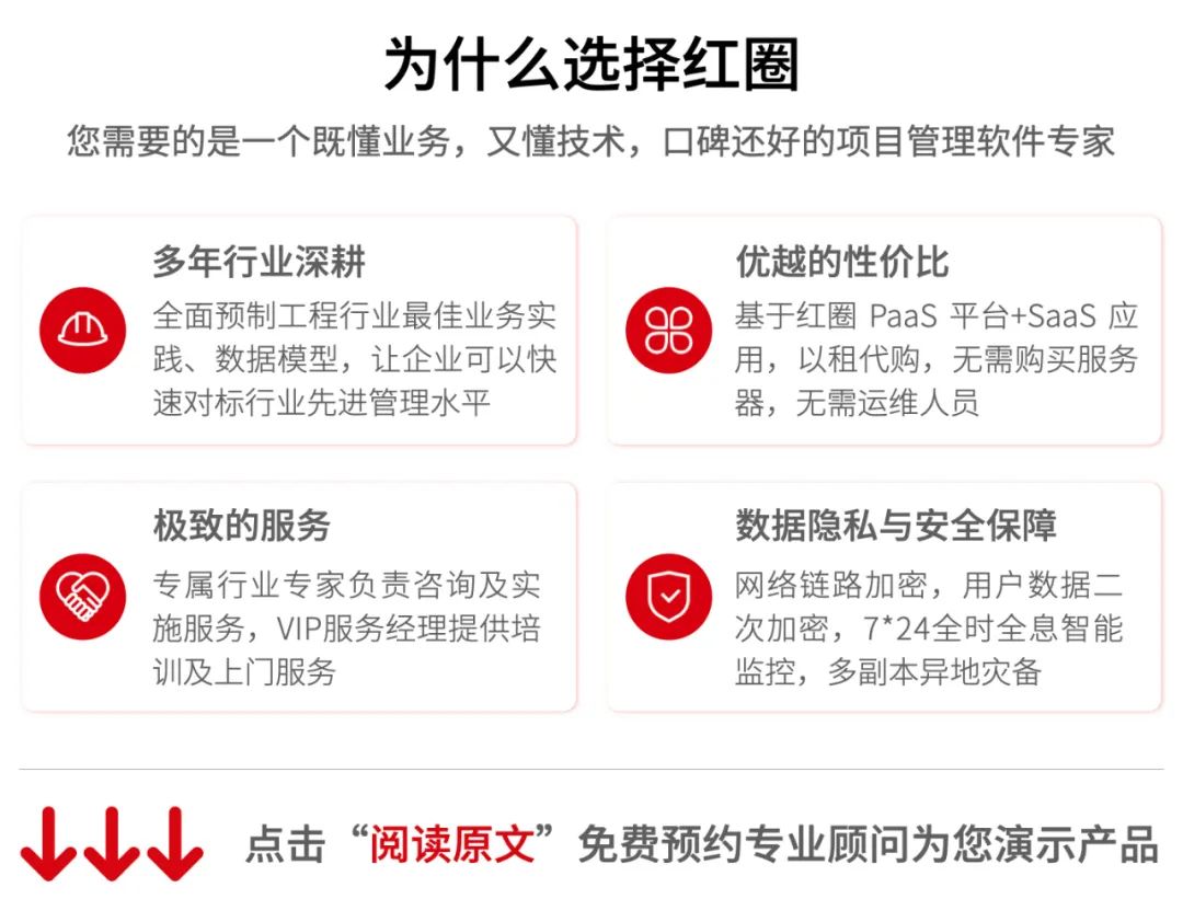 我们以红圈工程项目管理系统的功能模块为例,向大家展示了数字化工程管理系统的便捷性和智能性,当然,系统的功能远远不止于此,它能够覆盖项目全流程的每一个关键节点,有效提高管理效率。