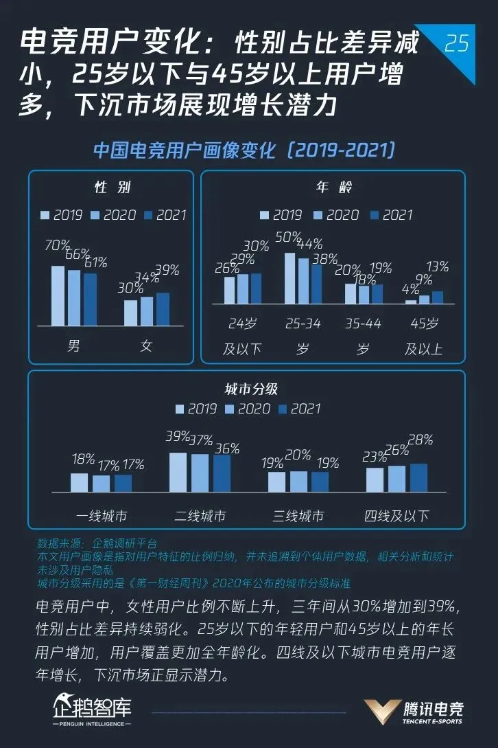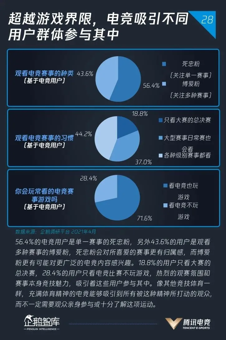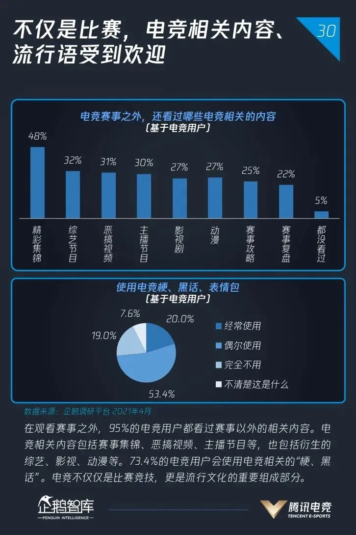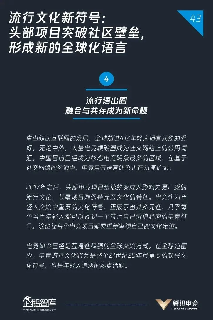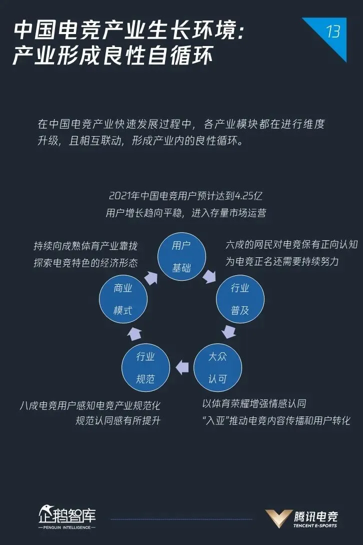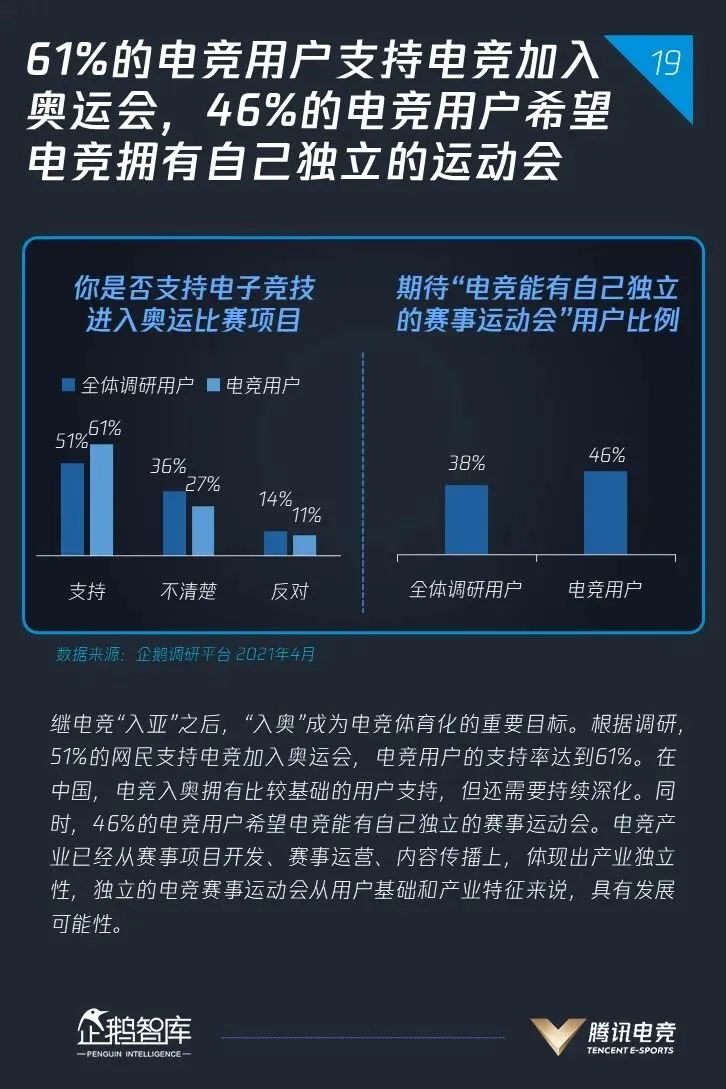 此次企鹅智库联合腾讯电竞发布的电竞行业报告,综合了中国电竞用户数据、产业大数据,和《电子竞技》杂志的专家洞察,最终共同完成这份《2021年中国电竞运动行业发展报告》。在这份报告中,我们将发布国际化视野下的中国电竞产业发展以及中国电竞用户需求特征,包括以下几个方面: