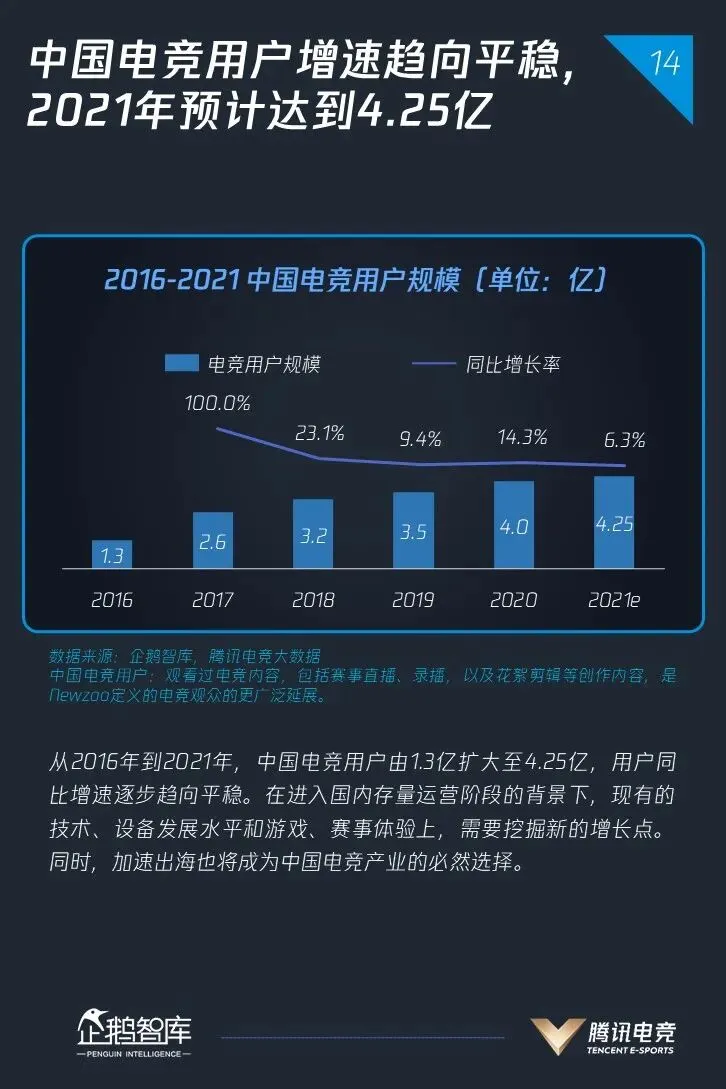 今年(2021),中国电竞用户预计达到4.25亿。随着产业持续加码和大众认可度提升,电竞运动不断突破固有的边界,正在从社区文化向流行文化扩展,“电竞城市”、“电竞入亚”、“数字体育”相继成为中国电竞产业发展关键词。在规范化、专业化的基础上,中国电竞在近两年,将有望迈入新一轮的产业爆发阶段。
