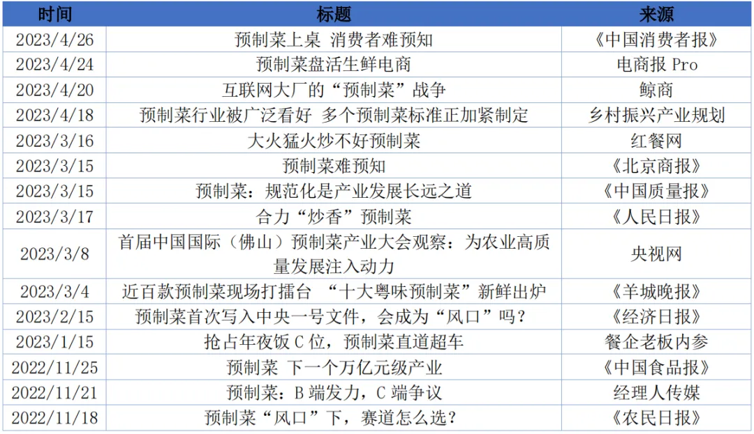 随着预制菜近年来逐渐走俏,舆论场中关于预制菜的讨论一直热度不减。总体来看,舆论对预制菜行业发展秉持理性乐观的态度,同时食品安全、口碑欠佳、监管缺失等问题也引发广泛讨论,舆论普遍期待行业实现高质量发展,并为此积极建言献策。据人民众云监测,2022年11月至2023年4月,预制菜相关中性声音占比76.4%,正面声音占比16.7%,负面评价占比6.9%。图4-1 2022年11月至2023年4月预制菜口碑分布(数据来源:人民众云)从热度较高的预制菜相关文章来看,舆论一方面聚焦预制菜产业的现状和发展态势,另一方面关注预制菜行业现存的风险挑战,并积极为预制菜行业高质量发展建言献策。行业发展方面,舆论主要聚焦预制菜产品特征、消费场景,行业发展背景、行业发展情况,各地相关政策和产业发展态势,以及相关企业的经营发展和市场布局等。舆论对预制菜行业给各行各业及广大消费者带来的积极影响给予高度评价,包括能够帮助餐饮企业尤其是连锁餐企降费增效,助力农产品的标准化,给消费者带来便捷体验等。如《经济日报》2022年11月15日发文《预制菜等热门赛道“赢”在品质》指出,预制菜丰富了餐饮行业的服务维度。它的出现迎合了市场对效率与品质的需求,在餐饮行业成本压力上升的情况下,让更多消费者可以品尝到质量稳定、价格适中的菜品。舆论场中相关的负面评价,主要包括对预制菜产品安全、健康、营养等方面的质疑以及对行业发展现状的担忧。一方面,不少消费者质疑预制菜食品安全风险、口味欠佳、同质化现象严重、标识信息标注不全等问题。如《中国质量报》2023年2月20日发文《预制菜要文火慢炒》指出,资本热炒之下,预制菜市场看上去很火,但多是虚火,遮掩不住那些实实在在的病症。其中,最显见的病症,就是菜品存在质量安全问题。今年1月份,中国消费者协会所发布的2022年十大消费维权舆情热点也显示,预制菜产品品质及应用场景存在侵权隐患引发关注。具体包括产品质量参差不齐、口味欠佳、标识信息标注不全、餐厅使用预制菜未主动告知消费者等问题。另一方面,舆论还关注预制菜行业面临的相关标准规范和监管缺失、侵犯消费者权益、专业人才引进和培育、企业“出海”“闯关”和国际市场布局等难题和痛点。如《中国食品报》2022年11月25日刊发文章《预制菜 下一个万亿元级产业》指出,随着我国预制菜市场规模快速扩大,有业内人士担心,“万亿风口”下各类企业一哄而上,在带来同质化问题的同时,也会导致部分企业陷入恶性竞争,通过降低品质换取利益,食品安全也就无从保障,甚至破坏整个行业的口碑。关于预制菜产业高质量发展,不少学者和业内专家积极建言献策,主要围绕出台鼓励政策、完善标准体系、加强行业监管、规范生产经营等方面提出建议,具体包括延伸上下游产业链、加大科研投入、加强冷链物流等基础设施建设、创新消费产品和消费场景、鼓励人才培育等方面。在人民网“领导留言板”平台和“人民建议”平台,不少网友也积极为预制菜产业整体发展和区域发展提供建议,包括预制菜行业加大政府支持和监管力度,尽快制定和实施预制菜行业生产标准,同时,推动预制菜厨房进社区、提高预制菜知名度和认知度等等。来自广东省的网友留言最多,如广州市番禺区网友留言称“番禺举办的广州美食节比较有特色,建议鼓励引导食品商家迎合年轻人的餐饮方式和适应快节奏的生活方式,推出预制菜服务,并在美食节期间推广”;深圳网友留言称“希望深圳大力推动‘圳味’预制菜产业发展,帮助当地传统食品企业实现转型升级,让更多的圳品预制菜被端上全国消费者的餐桌。”图4-2 预制菜口碑高频词云图(数据来源:人民众云)面对不时出现的质疑声音,甚至负面新闻和舆情事件,预制菜相关企业除了把好标准与检测双关,解决食品安全和口味等消费者需求痛点外,还应重视品牌和声誉管理,及时回应群众诉求,加强公共沟通,保障消费者权益,以诚信经营赢得客户。同时,做好宣传营销,加强品牌建设和差异化竞争,打造鲜明的品牌形象,提升品牌知名度、辨识度、影响力和忠诚度。