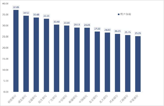 在占比最高的“用户体验”维度中,评测涵盖了注册、登录、注销等多个用户旅程,也囊括了搜索、客服、消息等多个互动体验,并重点关注了界面体验、便捷服务、遇阻处理等多个方面。13家银行信用卡App平均分为29.88分,有6家银行得分高于平均分,前3名分别为招商银行掌上生活、浦发银行浦大喜奔、交通银行买单吧。