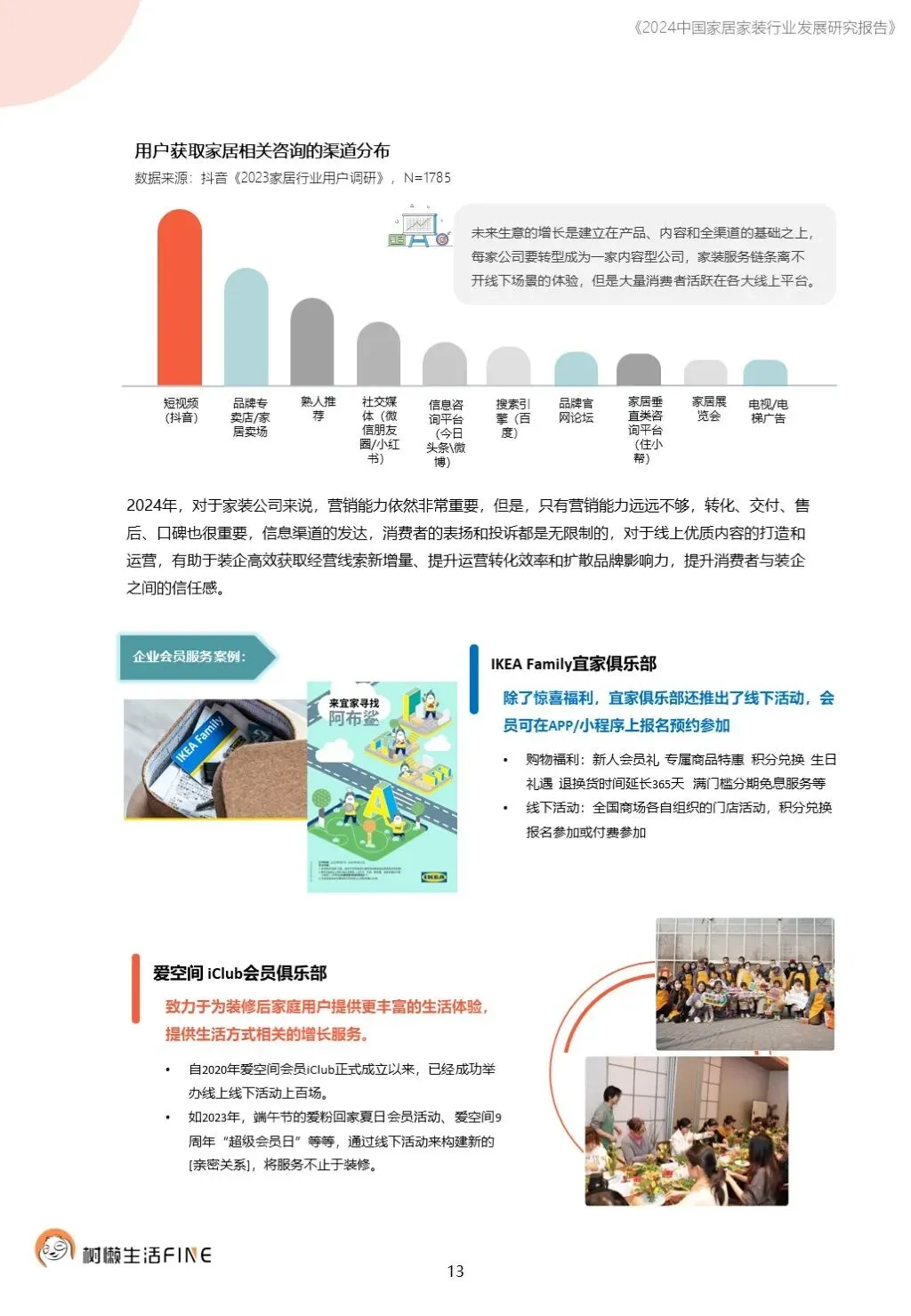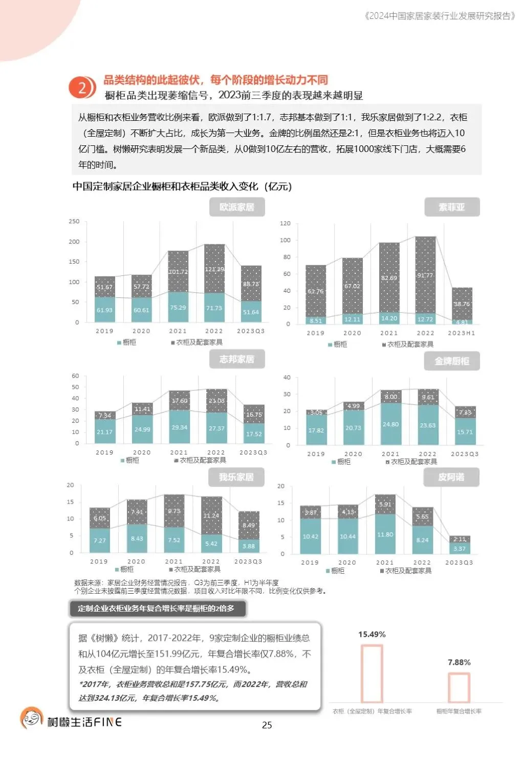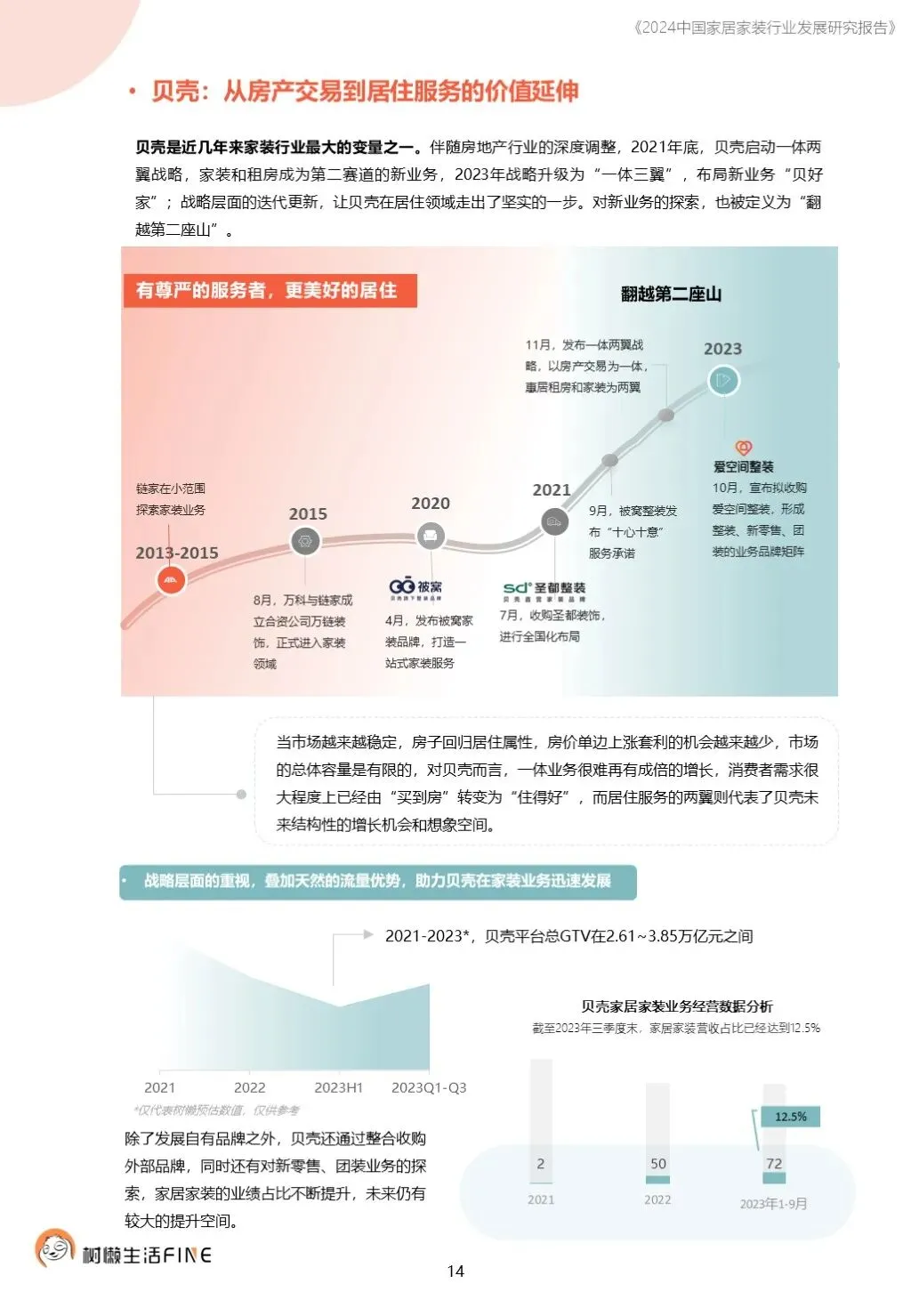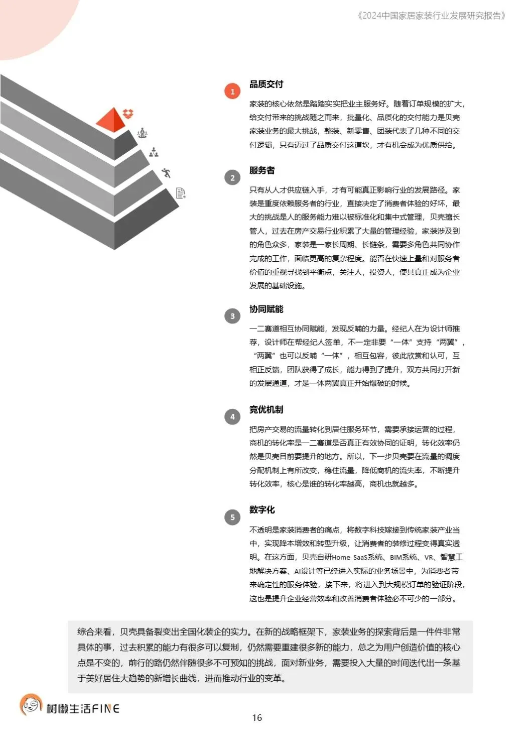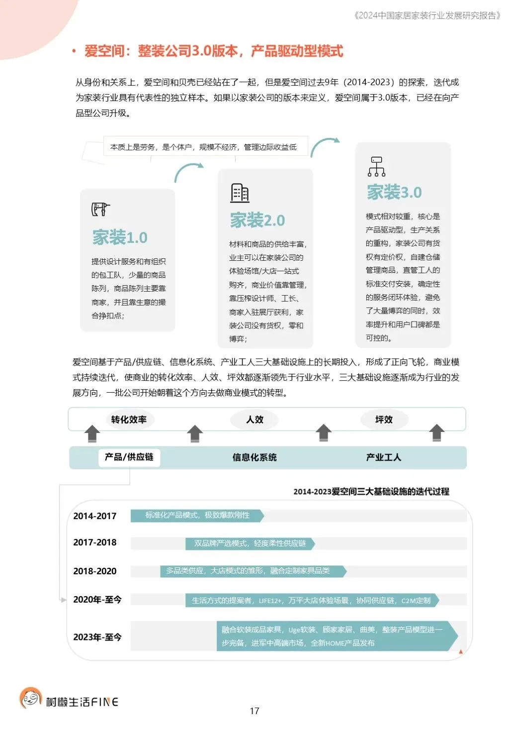 不知不觉已经踏入了2024年。过去这一年,每个人在波涛汹涌的大海中乘风破浪,勇往直前,非常不易。这一年,每个人都见证了太多行业发展的潮起潮落,资本并购、企业跑路、倒闭;这一年,增长压力之下,头部企业不断进行战略转型,寻找新的增长动力;这一年,新渠道、新技术、新人才,正在成为重构行业的新变量。新的一年,行业仍然存在很多挑战和不确定性,前行的路还有很多困难需要克服。产能过剩,需求萎缩的环境下,更激烈的竞争会是未来的常态,每家企业要为此做充足的准备,无论是乐观还是悲观,都要继续前行。这几年,行业各种概念太多,不但没有帮到企业,反而加剧了浮躁,渲染了焦虑。真正优秀的企业,一定是能够穿透纷繁复杂的概念,回归初心来寻找答案。2024年,务实和坚定应该要成为优秀企业的底色,尊重常识,多站在用户角度思考问题,重视基础,做不了基础工作的人也无力发起革新。树懒生活Fine撰写的这份《2024中国家居家装行业发展研究报告》如期而至。报告主要围绕家装/整装、整家模式、家居零售、渠道、技术、人才六个维度展开,期间与数十家公司通过面对面等多种方式进行访谈交流,体会经营者视角下的产业创新趋势。同时,从第三方公司的理性视角,用数据解读行业发展的现在和未来,希望对各位有所帮助,也欢迎更多的创业者与我们一起探讨交流。重为轻根,静为躁君。不管我们身处在一个什么样的时代,这是个体左右不了的,但是保持快乐、阳光、轻松、真诚、善良的心境和品德,这个取决于我们自己,或许这才是更好向前发展的基础前提。