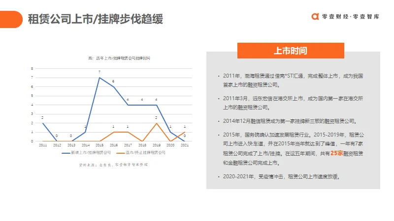 2018年到2021年,行业十年“大繁荣”迎来拐点,公司数量及市场规模增速均出现明显下滑,多方面因素影响下,不少租赁公司在业务上主动或被动采取了压缩规模、调整结构的举措,不再盲目追求规模扩张。在内外部压力下,不少同业都在思索行业未来转型发展之路。截至2021年6月末,全国融资租赁合同余额约为63030亿元人民币,与2020年末相比,减少约2010亿元,下降3.1%。2022年以来,国家不断出台政策促进融资租赁行业的发展,对于融资租赁的功能逐渐明确,对融资租赁业的监管不断趋严,融资租赁行业迎来统一监管、统一登记、加速出清、转型优化的关键时期,进入了融资租赁3.0时代,挑战与机遇并存。后疫情时代,伴随着监管趋严,融资租赁增速下滑,融资租赁板块仿佛成为了烫手山芋,许多公司都在“急于抛售”。纵使一些上市公司剥离这项业务,但并不代表融资租赁的发展处于下降阶段。2021年,各级监管机构针对租赁行业发布了一系列严监管政策,监管层整合出清空壳公司,驱动行业洗牌;租赁业回归业务本源,加大在小微企业、绿色租赁、数字化领域的业务布局和转型。从2021年8月到今,全国多地“十四五”金融改革规划陆续出炉,据零壹租赁智库不完全统计,江苏、上海、重庆等10个省、市、自治区的“十四五”金融发展规划中提到了鼓励融资租赁业务发展,政府对融资租赁行业是持有鼓励的态度,如何让融资租赁在后疫情时代下成功转型,是当下最重要的关键点。事实上,在前几年融资租赁纳入银保监会统一监管,地方金融监管部门就被授予了对注册在本地的融资租赁公司一定程度的监管权。中央及各地方为引导和促进融资租赁行业发展,发布了多个指导文件,大力支持融资租赁快速发展。零壹租赁智库不完全统计,目前已有宁波、深圳宝安区、东莞、苏州、云南滇中新区、北京、河北雄安新区等地出台相关政策,通过给予专项补贴、人才奖励、完善配套服务体系等方式促进融资租赁行业发展。可以预见的是,在新的监管政策下,各个地方,尤其是实体经济发展较好的地方,将进一步重视融资租赁的发展和监管。此外,报告还发布了2021年度上市租赁公司和金融租赁公司的业绩,以及2021年度融资租赁债券的发行情况,并对多家融资租赁公司的创新债券案例进行分析。伴随着我国疫情的有效防控,“十四五规划”的出台,我国融资租赁业在以国内大循环为主体、国内国际双循环相互促进的新发展格局中迎来新的发展机遇,无论是传统行业的升级改造,还是新兴行业的蓬勃发展;无论是民生基础设施建设,还是内生循环刺激消费,这些都将为融资租赁业带来新的发展增长点。加强真租赁;服务新兴产业;创新服务模式;优化融资结构;加速数字化转型战略成为租赁行业转型优化的五大核心。
