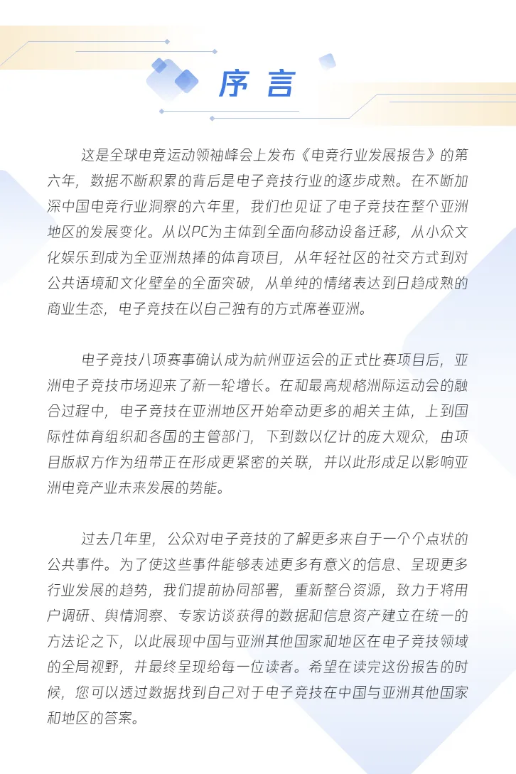 过去六年里,我们见证了电子竞技在整个亚洲地区的发展变化。成为杭州亚运会的正式比赛项目后,亚洲电子竞技市场迎来了新一轮增长。
