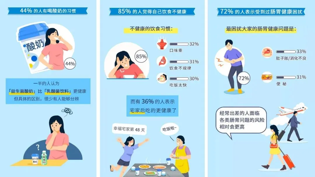 在乳制品的各个细分领域,丁香健康营销曾有过多样的成功尝试。在酸奶领域,丁香曾与活润益生菌酸奶有过深度合作。针对疫情之后,全民健康意识提升、用户对健康科普需求旺盛的情况,丁香医生联合活润发布《2020 消费者健康问题及健康习惯调研》,从饮食、运动、睡眠等多场景切入,聚焦肠胃问题,以专家解读的形式为「科学益生菌组合」的产品亮点背书,凭借极强的丁香医生 IP 公信力为品牌赋能,建立用户信任。同时,丁香医生联合活润打造「活润健康研习社」系列栏目,持续输出健康科普类内容,帮助品牌聚合私域流量,实现用户的深度教育。在产品端,丁香医生结合调研结论,别出心裁地将用户关心的肠道健康科普点上线产品包装,将产品与肠道保护事项紧密关联,提升用户感知,加速消费决策,建立正面的品牌心智。在传播环节,丁香医生拥有全国 70% 以上的专业专家医生资源,能够参与到内容共创及传播环节。借助 5.29 世界肠道日,丁香医生充分调动专家力量,引导关注品牌抖音直播,用专业为品牌带货,进一步为品牌赋能。