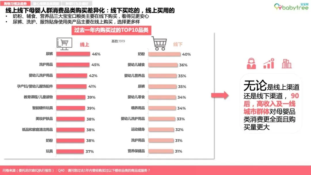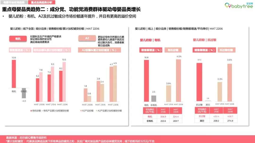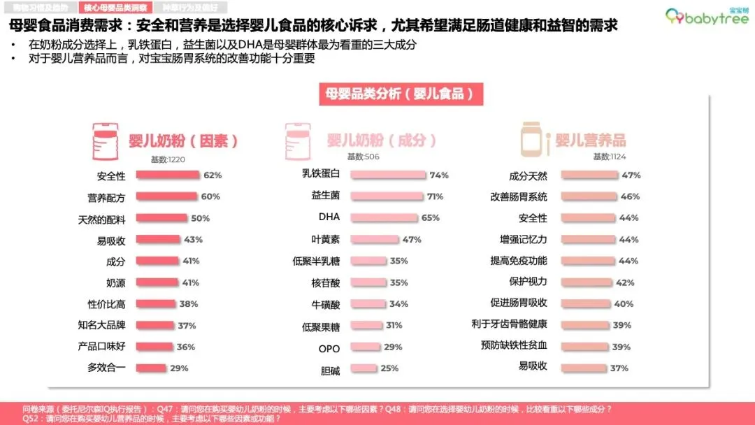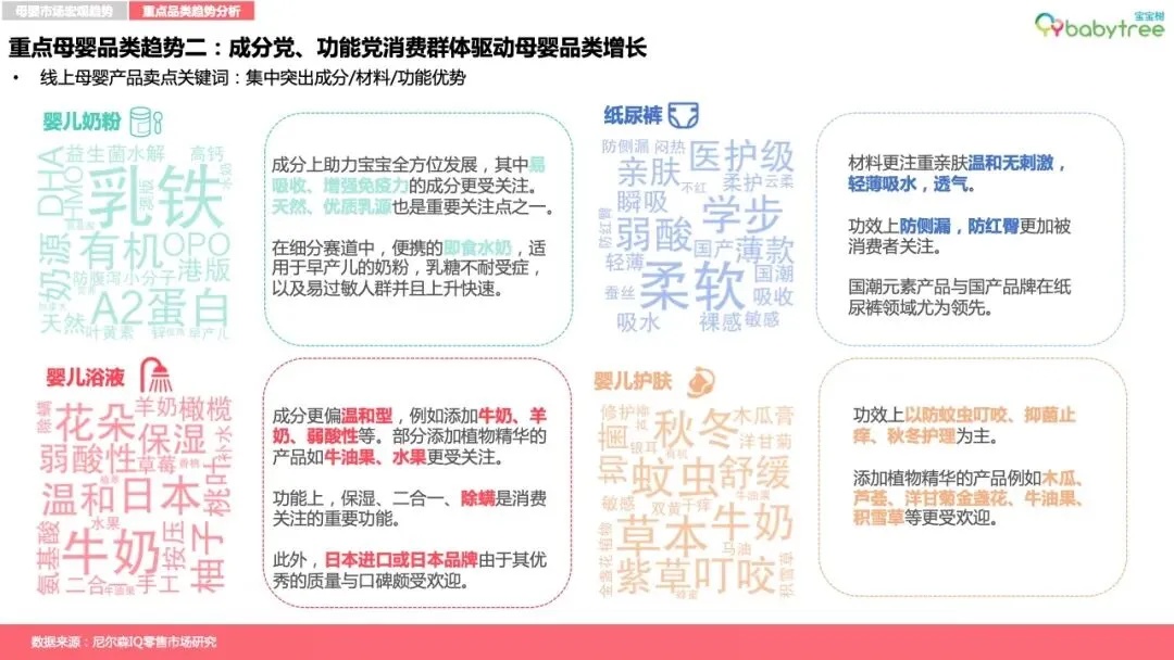核心母婴消费品类发展趋势: